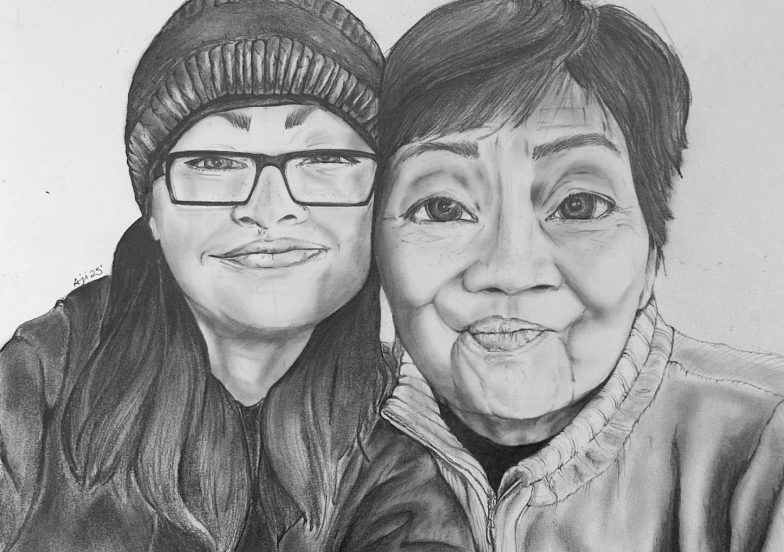 - This drawing is an homage to my late grandmother who raised me and passed away in 2020. Through exaggerated character form expressive gesture and integrated hand lettering the piece uses illustration as a narrative device to translate memory care and personal history into visual language. The process moves from graphic pencil exploration to micron pen refinement emphasizing intentional line hierarchy and emotional clarity.