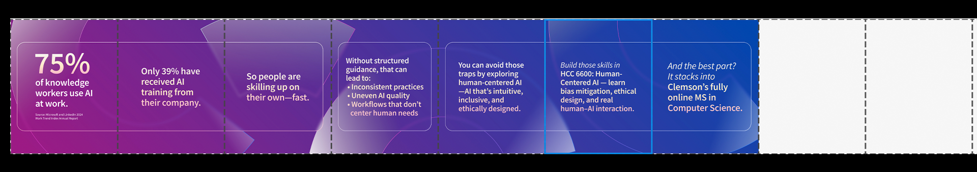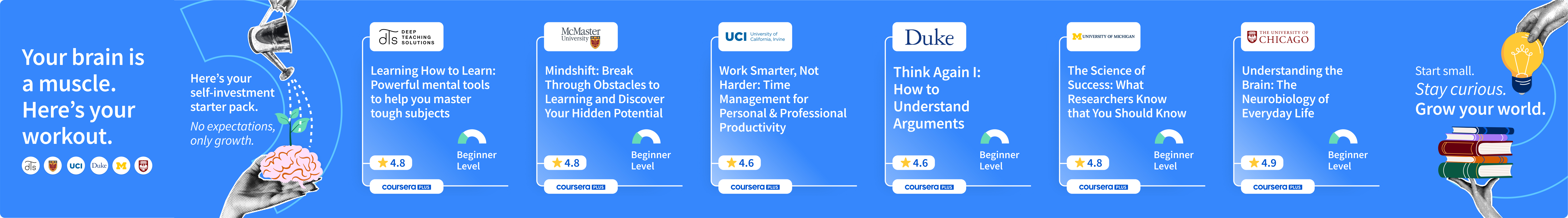 Working closely within Coursera’s established brand guidelines, I relied heavily on the blue palette provided, treating color not as a limitation but as a constant against which variation could occur. Through experimentation with scale, repetition, layering, and directional composition, the C shape was activated as a dynamic conduit rather than a static frame. These adjustments allowed the design to feel more lively and contemporary while preserving brand equity.