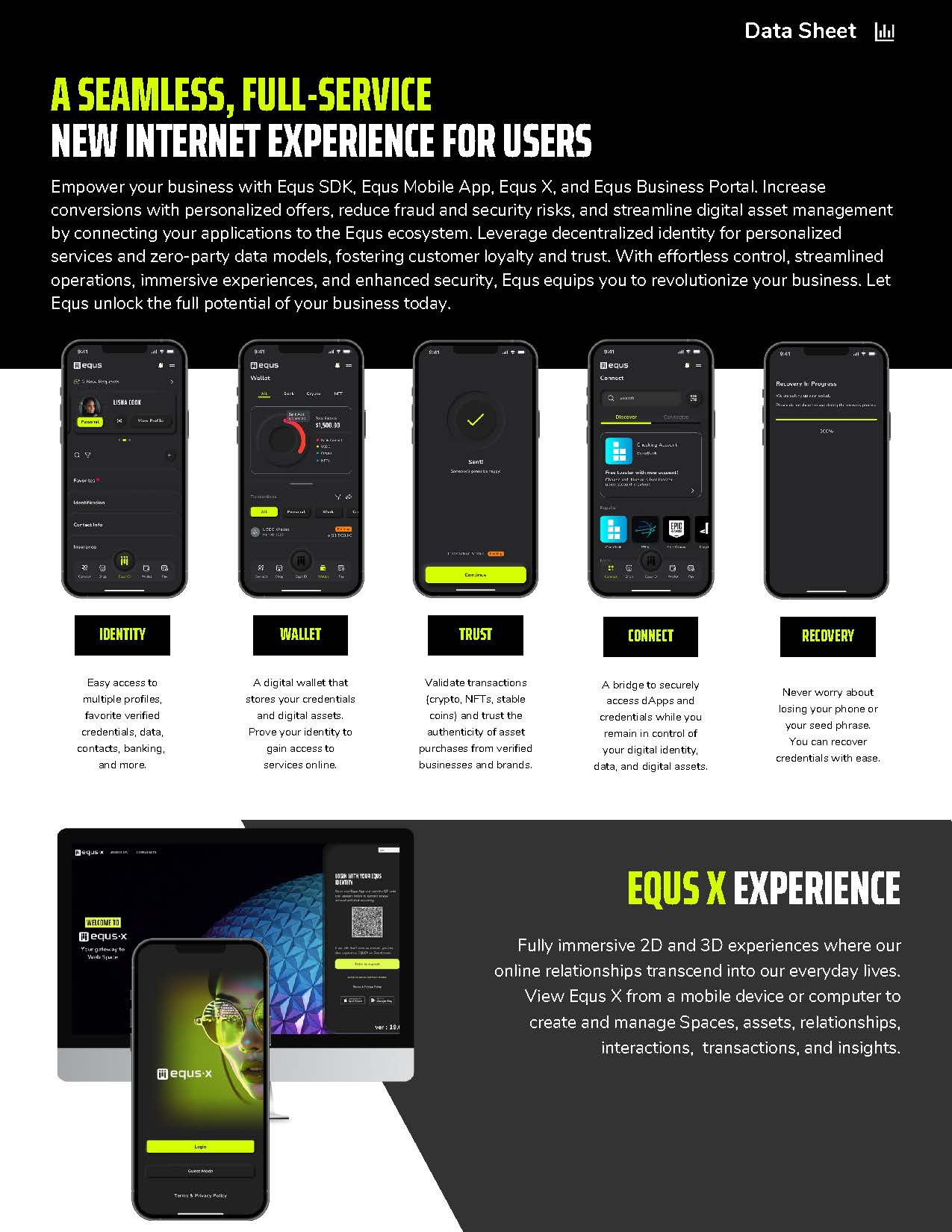 This project focused on the design of internal and external communication systems for Equs, including presentation decks, business development materials, product documentation, and partner facing assets distributed both digitally and in print. The objective was to establish a coherent visual and structural system that could clearly articulate a new product while supporting evolving relationships with stakeholders, collaborators, and partners.